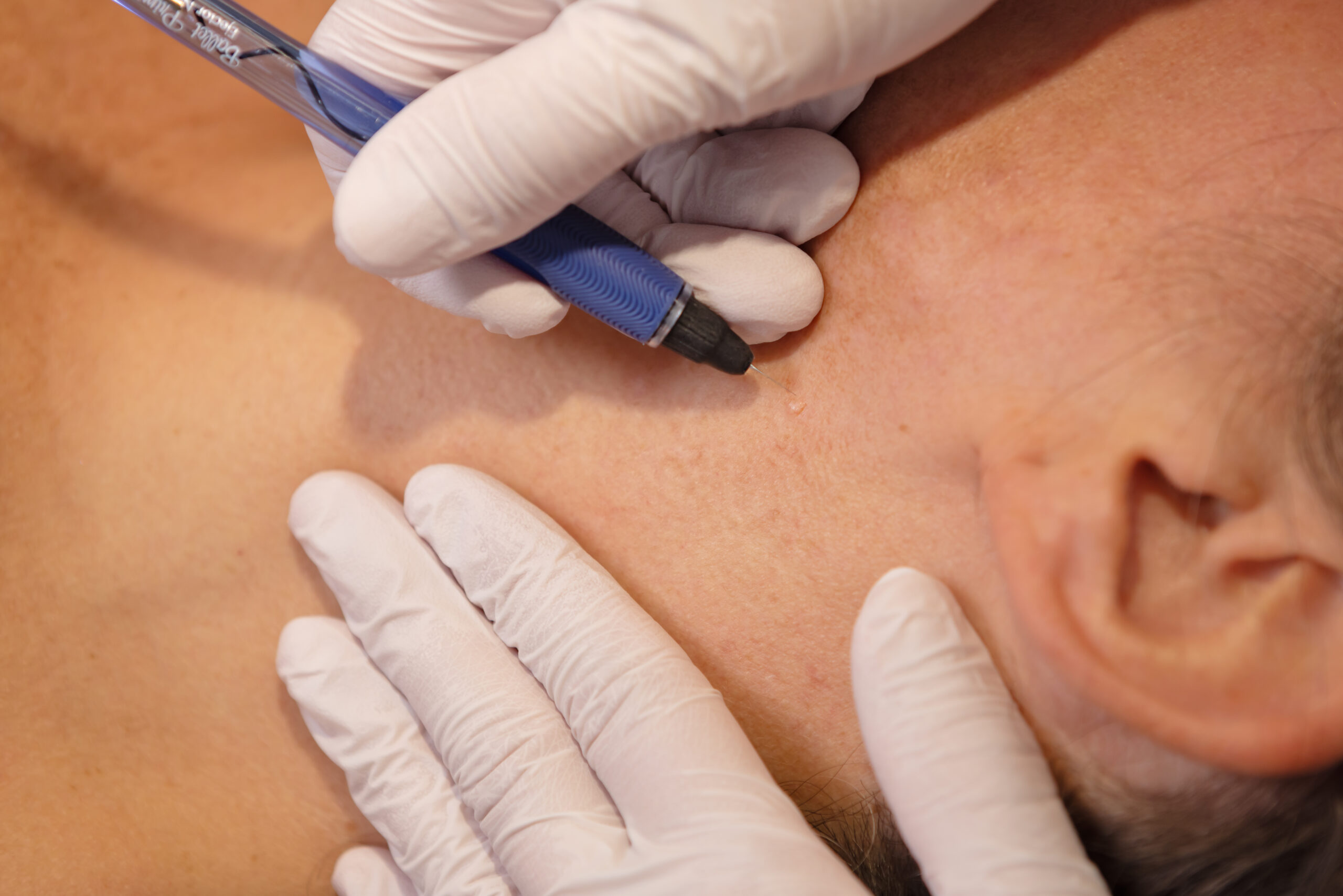 - Coagulatietherapie: Met behulp van een naaldje en stroom wordt de huidafwijking door middel van hitte op een eenvoudige wijze vernietigd, zonder dat daar een chirurgische ingreep aan te pas hoeft te komen. Hierdoor wordt littekenvorming voorkomen.